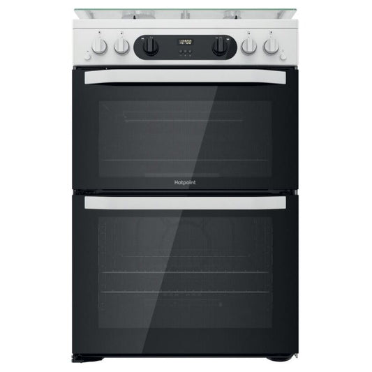 Hotpoint HDM67G0CCW 60cm Gas Cooker With Double Oven & Lid