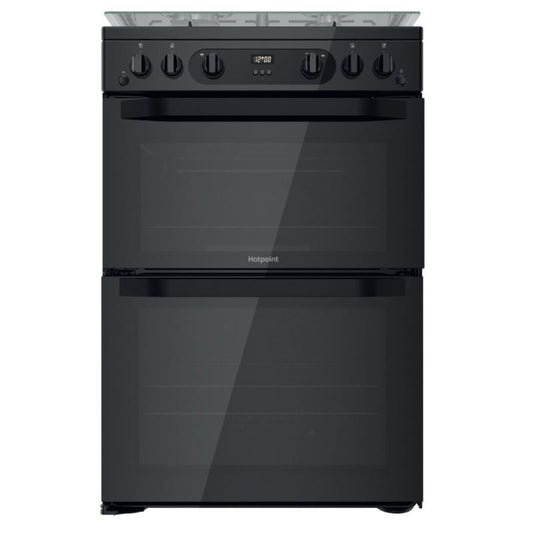 Hotpoint HDM67G0CCB 60cm Gas Cooker With Double Oven & Lid