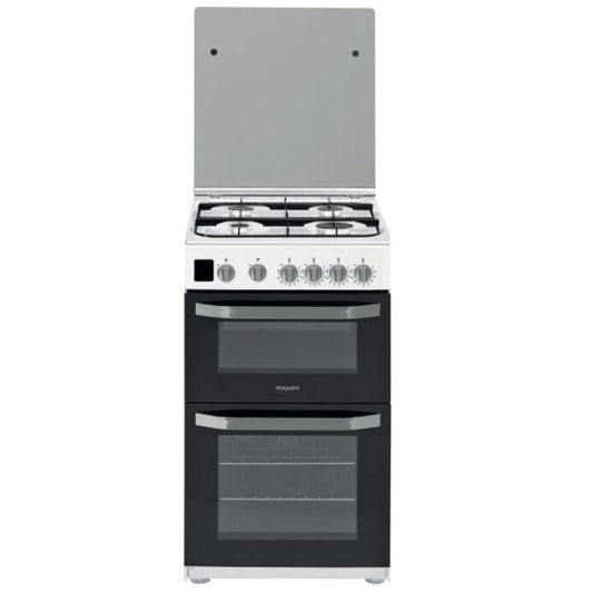 Hotpoint HD5G00CCW 50cm Gas Cooker With Double Oven & Glass Lid