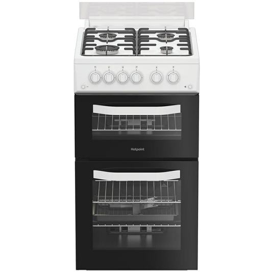 Hotpoint HDG5GCW 50cm Gas Cooker With Double Oven & Glass Lid
