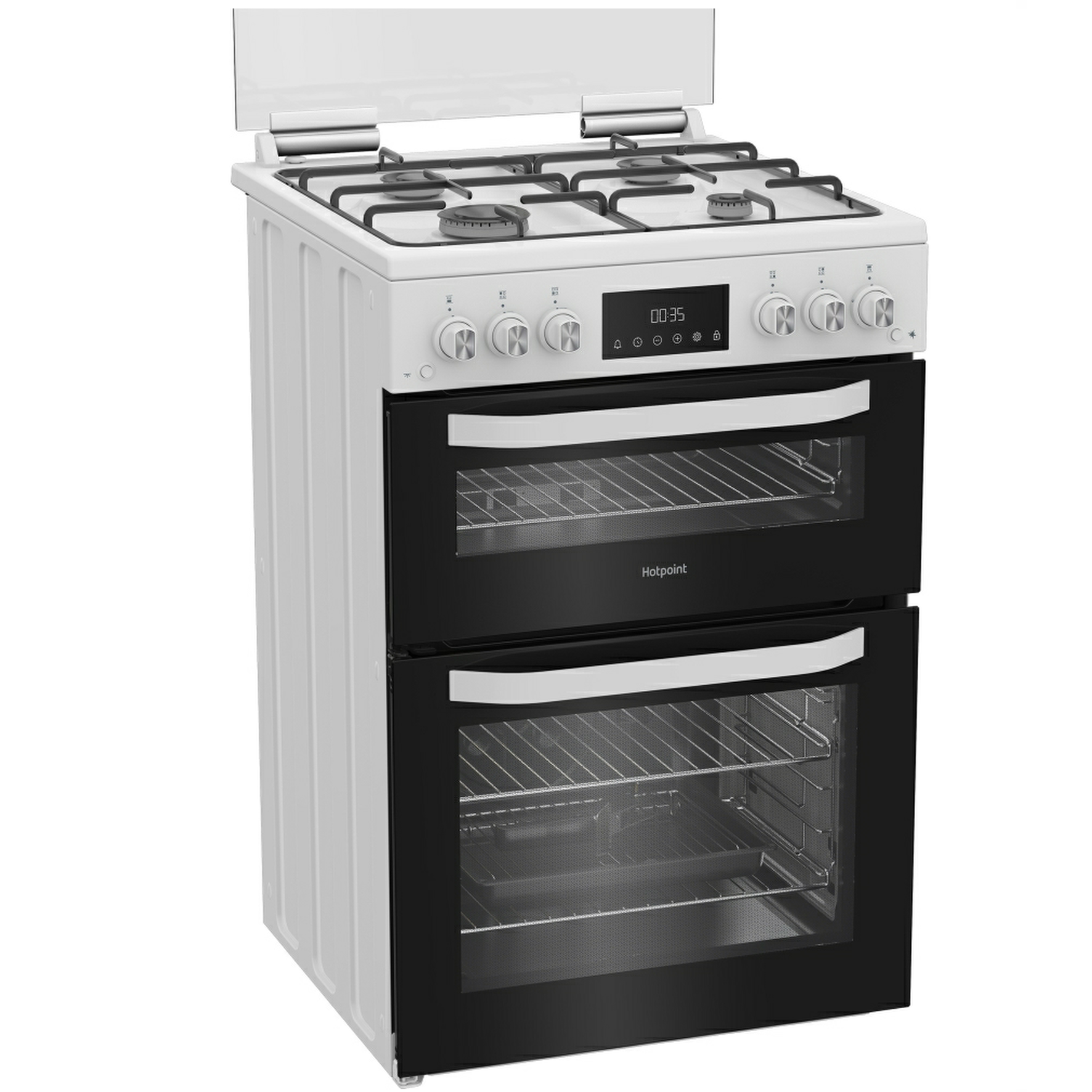 Hotpoint HDG6GDCW 60cm Gas Cooker With Double Oven & Glass Lid