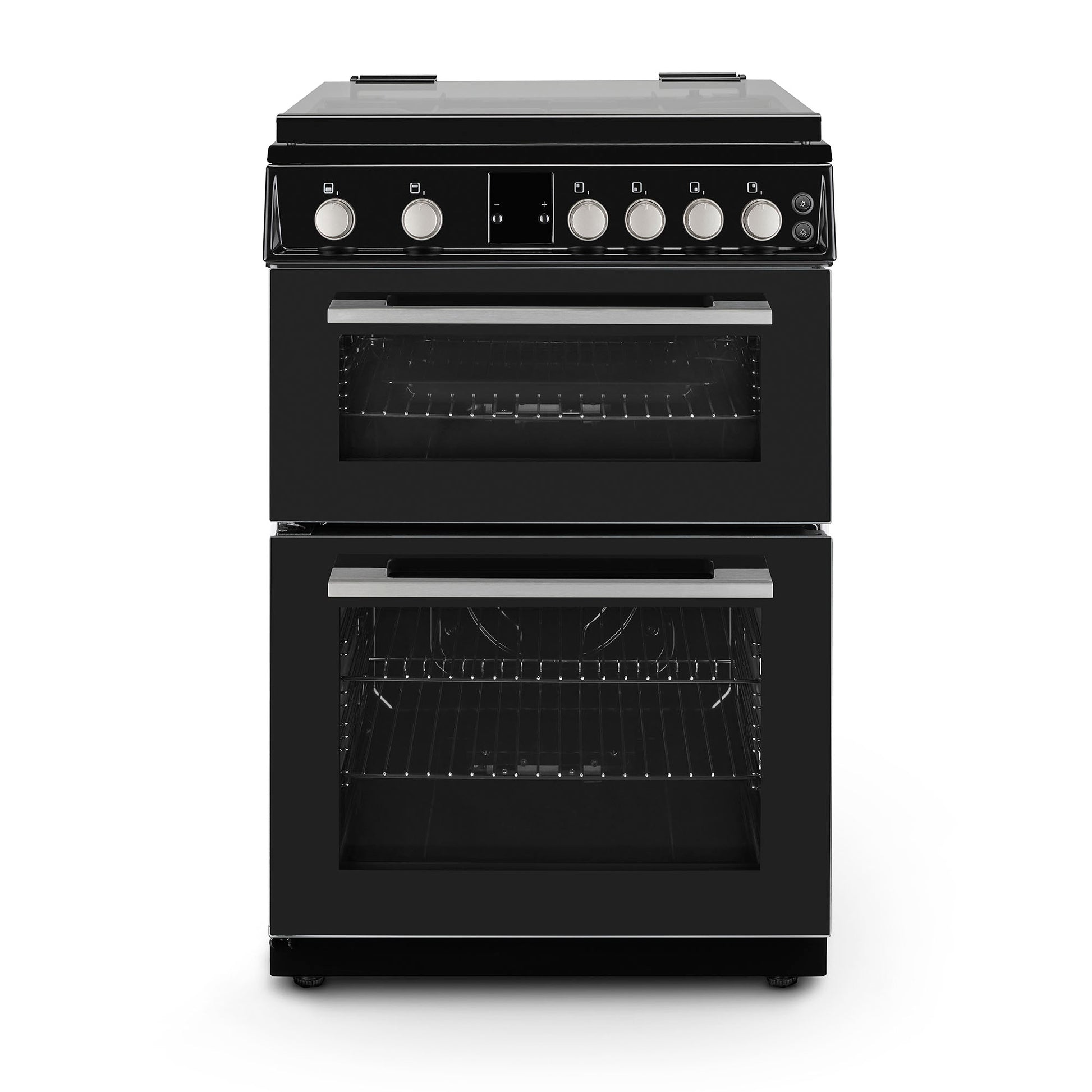Montpellier MDOG60LK 60CM Black Double Oven Gas Cooker With Glass Lid